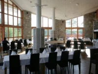 Рассчитанный на 80 мест зал ресторана главного корпуса и кабинет при ресторане на 50 мест предоставляют отличную возможность для проведения торжественных мероприятий и обеденных деловых встреч. Наши повара позаботятся о том, чтобы на столе были сезонные свежие деликатесы на любой вкус. Но и для глаз здесь есть сюрприз: журчащий по всему залу ручей с рыбками. Не могут не порадовать глаз и винный шкаф, а также Аргентинский гриль - обоснованные причины для гордости ресторана! А с террасы (250 мест) одно удовольствие наблюдать необычайно красивые закаты, здесь можно забыть о будничной спешке, расслабившись в атмосфере летних вечеров у Аргентинского гриля.