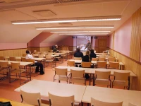 Размещение в коттеджах: 22 современных коттеджа на 2-5 человек с плитой, холодильником и двухярусными кроватями. Удобства общие в отдельном здании.
