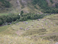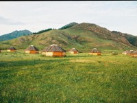 Расстояние от Абакана до базы «Кюг» - 140 км. База состоит из 15 деревянных восьмиугольных юрт, рассчитанных на проживание одного-двух человек.