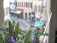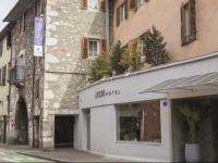 45.89714, 6.122658В Анси мы приехали под вечер. От вокзала до отеля по прямой – 5 минут неспешного хода. Сразу заселились в Adonis Annecy – Icone Hotel, в котором провели всего одну ночь. И честно говоря, годится он именно для однократной ночевки. Есть свои плюсы и минусы, но обо всем по порядку. Отель располагается в здании 16-го века. Мы жили в старой башне. Что, несомненно придает своеобразное очарование и не