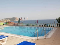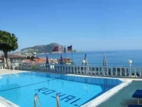 Отель Royal находится на въезде в Аланию, имеет одно пятиэтажное здание, очень маленький бассейн. Отель расположен на большой возвышенности, к нему ведёт очень длинная и крутая лестница с многочисленным количеством ступенек. Даже самый здоровый человек за время отдыха устанет по ним подниматься несколько раз в день, о подъёмнике и лифте говорить совсем не приходится - их просто нет. И это не удиви