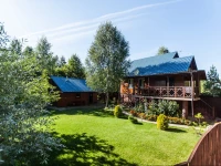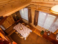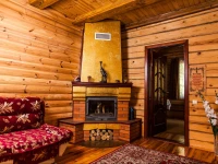 Деревянный сруб, 3 уровня,180 м.кв, 6 комнат, до 30 посад-х и 20 спал. мест, отопление, камин, недорогая кухня, б/платный wi-fi, караоке, спутник.ТВ, беседка, баня на дровах с веником, мангал, казан, гор.вода.