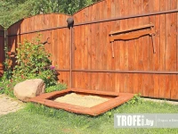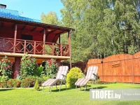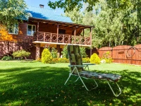 На охраняемой территории усадьбы «Хата Михася» выполнено озеленение с элементами ландшафтного дизайна. В четырех метрах от дома, в непосредственной близости к лесу расположена рубленая русская баня на дровах, рядом с которой есть зона барбекю с мангал-грилем и казаном для приготовления плова или наваристой ухи. На просторном участке также разместились детская площадка с песочницей, летние шезлонги для комфортного отдыха и загара. Гости могут как понежиться в комфортных садовых качелях, так и освежиться в бассейне или летнем душе, который расположился прямо на газоне.