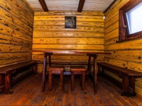 Гости усадьбы могут с комфортом провести свободное время в русской бане с вениками. Здесь есть парилка на 4-5 человек, помывочная, оборудованная душем и водонагревателем, а также комната отдыха. Дополнительно по предварительной договоренности предоставляются услуги банщика-парильщика или массажиста.