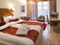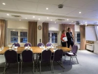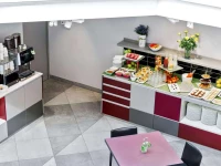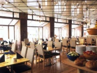 Главный ресторан расположен в большом зале в центре отеля. Это приятное место с раздвижной крышей, которая открыта летом. Здесь подается только завтрак. Также имеется еще один ресторан, который обычно открыт. Отель принадлежит религиозной благотворительной организации, поэтому алкоголь не приветствуется.