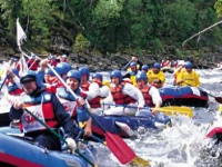 Расположен на горнолыжном курорте Рука, рядом с склонами, в 15 минутах езды от аэропорта.