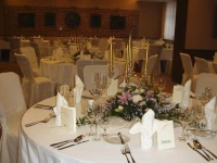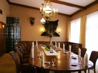 ОХОТНИЧИЙ САЛОН - эксклюзивное помещение для организации различных торжеств и праздничных мероприятий не только семейного, но и общественного характера. Вместимость помещения - 25 человек. Салон для некурящих, в котором имеется кондиционер. Приятную атмосферу, особенно в зимние месяцы, создает изразцовая печь с лесным мотивом. Все помещение озвучивается собственными музыкальными устройствами. В интерьер входят и трофеи зверей из различных уголков Словакии, а также старинные люстры и картины с охотничьим мотивом.