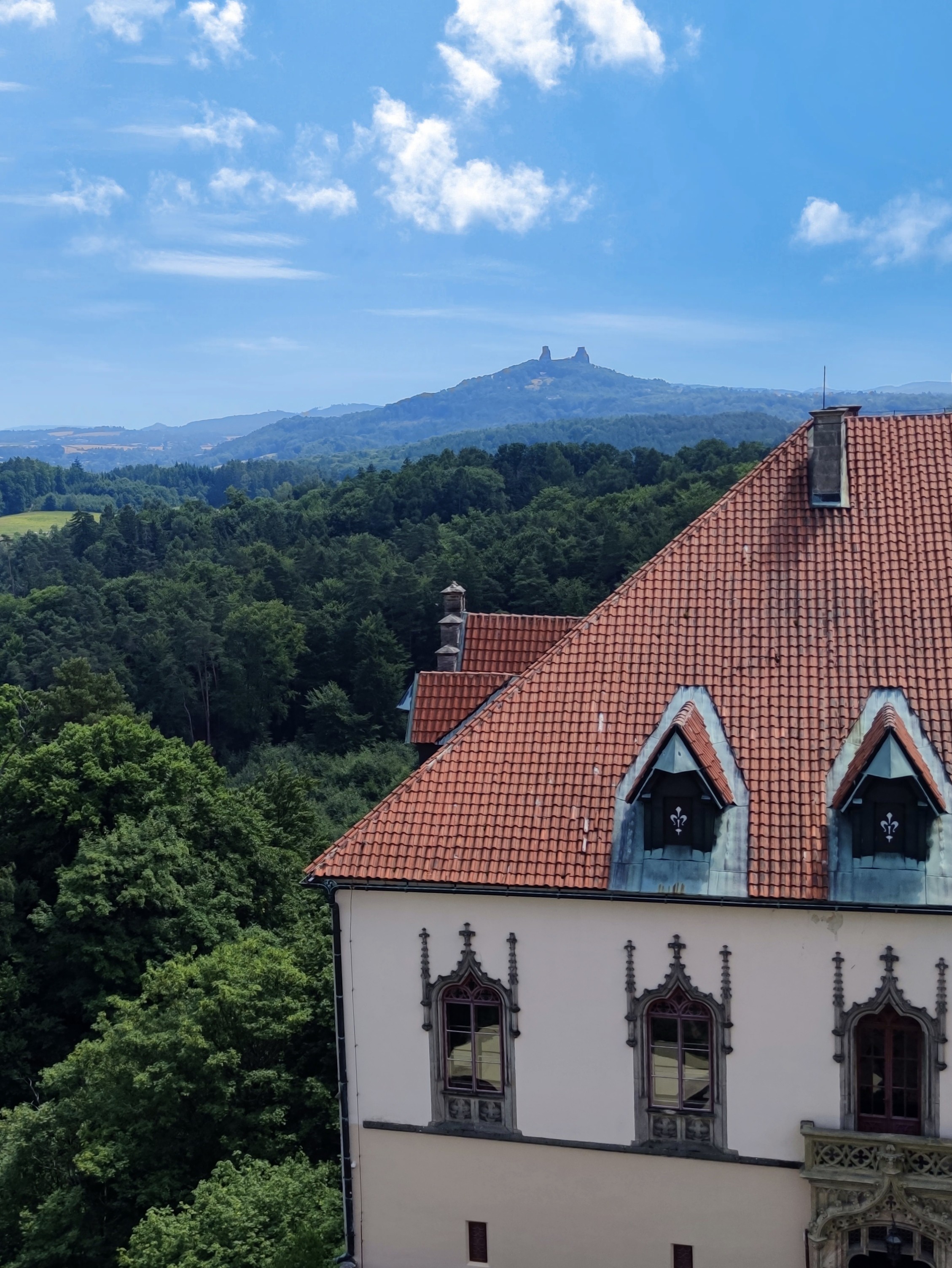 Извилистая лесная дорога живописна поленовским лесом и бесконечными ухоженными полями. Сам замок расположен на полукилометровой горе, откуда поля и ёлки больше похожи на аэрофотоснимки. С обзорной площадки замковой башни в ясную погоду можно даже рассмотреть жизнь в Польше.