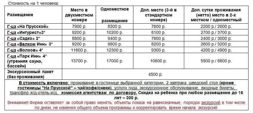 ~17-00 Трансфер на ж/д вокзал для туристов, убывающих в Санкт-Петербург.