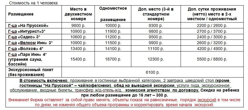 Г-ца «Волхов» 4* 5500 р./ 6400 р./ 2500 р.