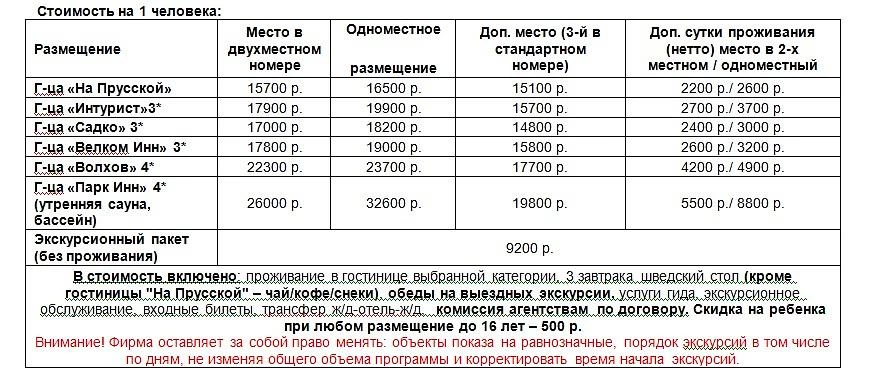 ~17-30 Прибытие в В. Новгород. Трансфер на ж/д вокзал для туристов, убывающих в Санкт-Петербург.