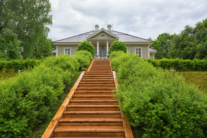 Экскурсия по усадьбе друзей Пушкина Осиповых-Вульф Тригорское: «веселый» дом, английский парк, на территории которого – “скамья Онегина”, банька, “зелёная танцевальная зала”, “солнечные часы”, “дуб уединЕнный» и аллея Татьяны.