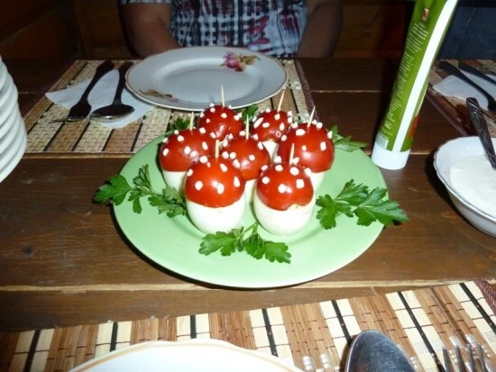 Завершается программа торжественным обедом у Гадюки Васильевны в трактире «Змея Горыныча» с дегустацией «гадовских настоек» местного производства. Меню обеда: борщик «молодильный», холодец «хреновый», «гадючка на пенечке», «мышки», картофельные котлетки с подливкой из поганочек, капустка и огурчики, чай с печеньем «лапа Горыныча», дегустация гадовских напитков – 3 вида по 50г.