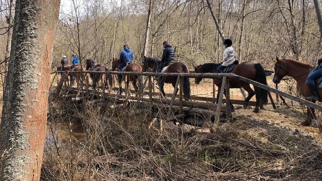 В зависимости от погодных условий и количества человек в группе — организовывается выход в 2-х дневный конный поход по маршруту Михайловское – Льгово — Михайловское. Зимняя конная база «Льгово» — за лесами на высоком холме небольшая деревенька, с красивыми видами на бескрайний горизонт. Домики, уютный вагончик, конюшня, летняя столовая и др. Кормление и поение лошадей, а также приготовление пищи на кухне на газовой плите или, по желанию, на костре силами туристов. Вода родниковая. Пешая прогулка вдоль склона, по каменному каньону через лесную речушку, вотчину бобров, к памятнику рук человеческих: треугольная церковь с хорошо сохранившимися фресками и росписями на стенах. Вид открывается бескрайний. Выезды верхом в лесных зарослях и заросших дорог. Вечерние байки у костра.
