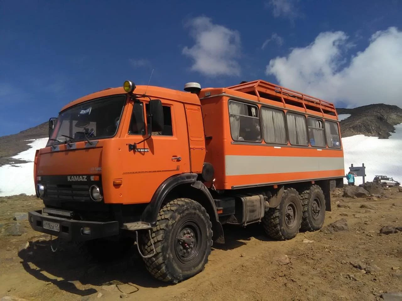 7:30* Выезд через Вилючинский перевал, плато вулкана Горелый, в район Мутновского вулкана на машине повышенной проходимости КАМАЗ.