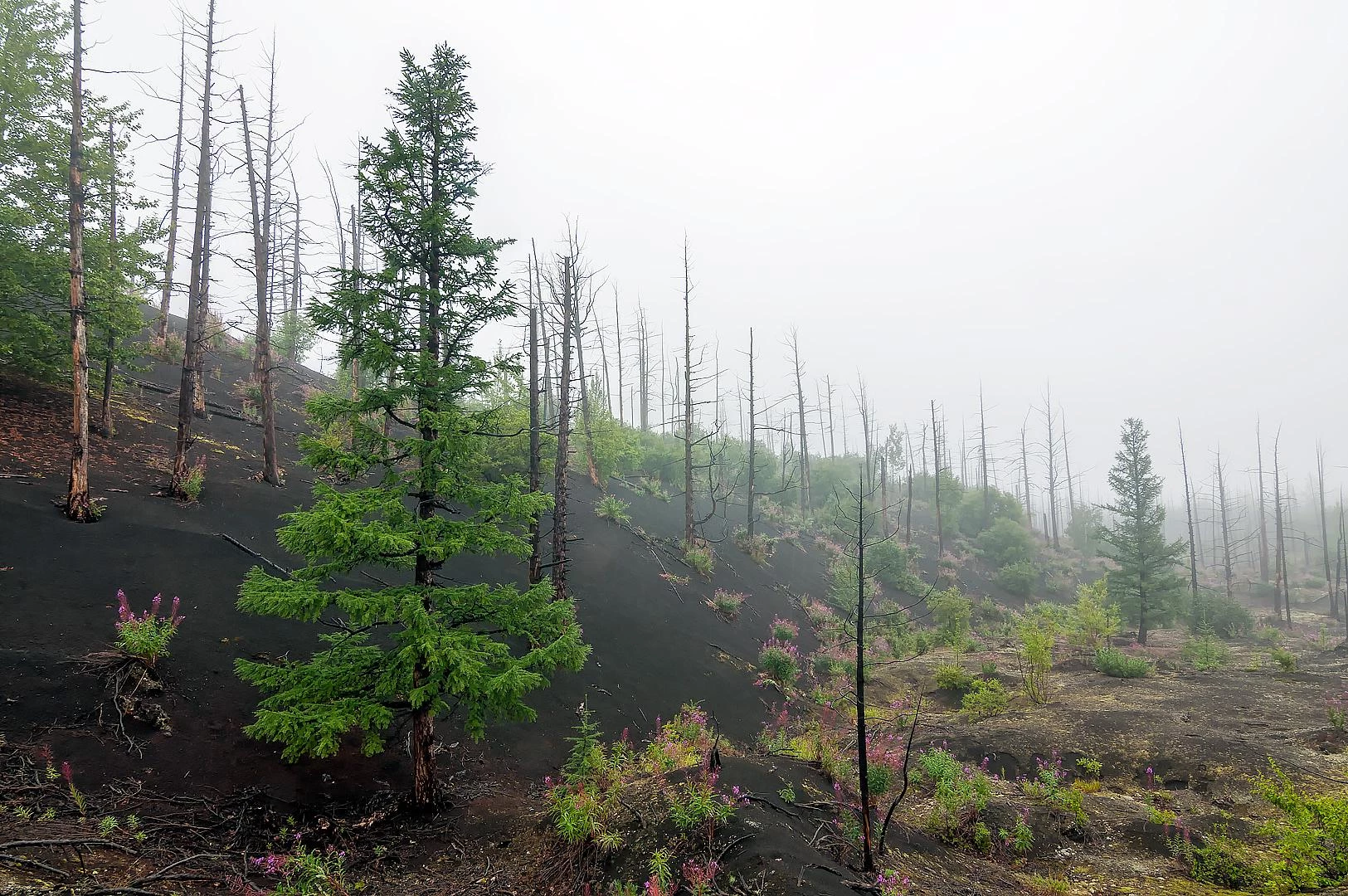 Переезд в «Мертвый лес», уничтоженный извержением 70-х годов.
