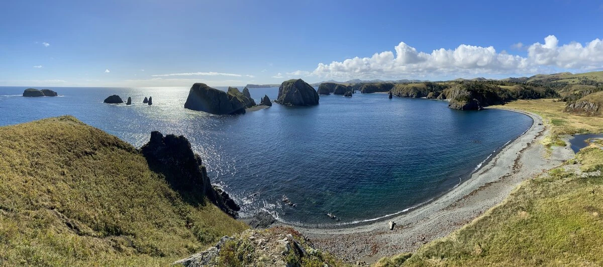 За две недели мы посетим четыре крупных острова. На острове Кунашир поднимемся на вулканы Головнина и Менделеева и пройдем по Курильскому заповеднику до известного мыса Столбчатого. На острове Шикотан посетим самые красивые бухты острова – Безымянную и Снежкова, окажемся на мысе Край света и поднимемся на мыс Шикотан. На острове Итуруп отправимся к Белым скалам и искупаемся в горячих источниках вулкана Баранского. На Сахалине мы отправимся к самому труднодоступному маяку региона – Анива. Между островами мы будем передвигаться на самолетах и надежных маломерных судах. Южные Курилы стоят того, чтобы на них побывать.