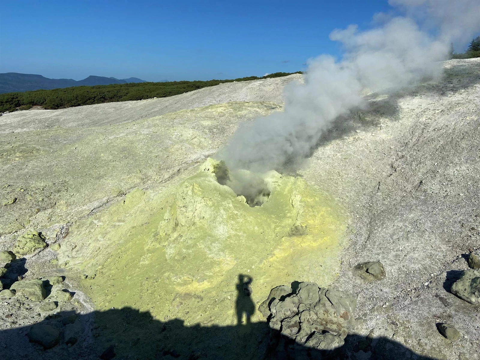 После завтрака отправимся к самому южному вулкану Курильских островов – вулкану Головнина. Отсюда до Японии всего пара десятков километров. Наша прогулка пройдет по кальдере активного вулкана. Маршрут довольно трудный, но идет по удобной туристической тропе. На месте кратера вулкана после древнего катастрофического извержения образовалось два озера – Кипящее и Горячее, названия которых говорят сами за себя. Вода в озере Кипящее подогревается вулканическими раскаленными газами, и в местах их выхода температура воды достигает +95°C. На берегах этого озера еще можно увидеть остатки японского промысла серы – металлические котлы и деревянные сваи. Поднимемся на обзорную площадку, откуда виден весь кратер вулкана Головнина, а на горизонте откроется вид на самый северный японский остров Хоккайдо. Пообедаем с видом на озеро. Вечером вернемся в Южно-Курильск.