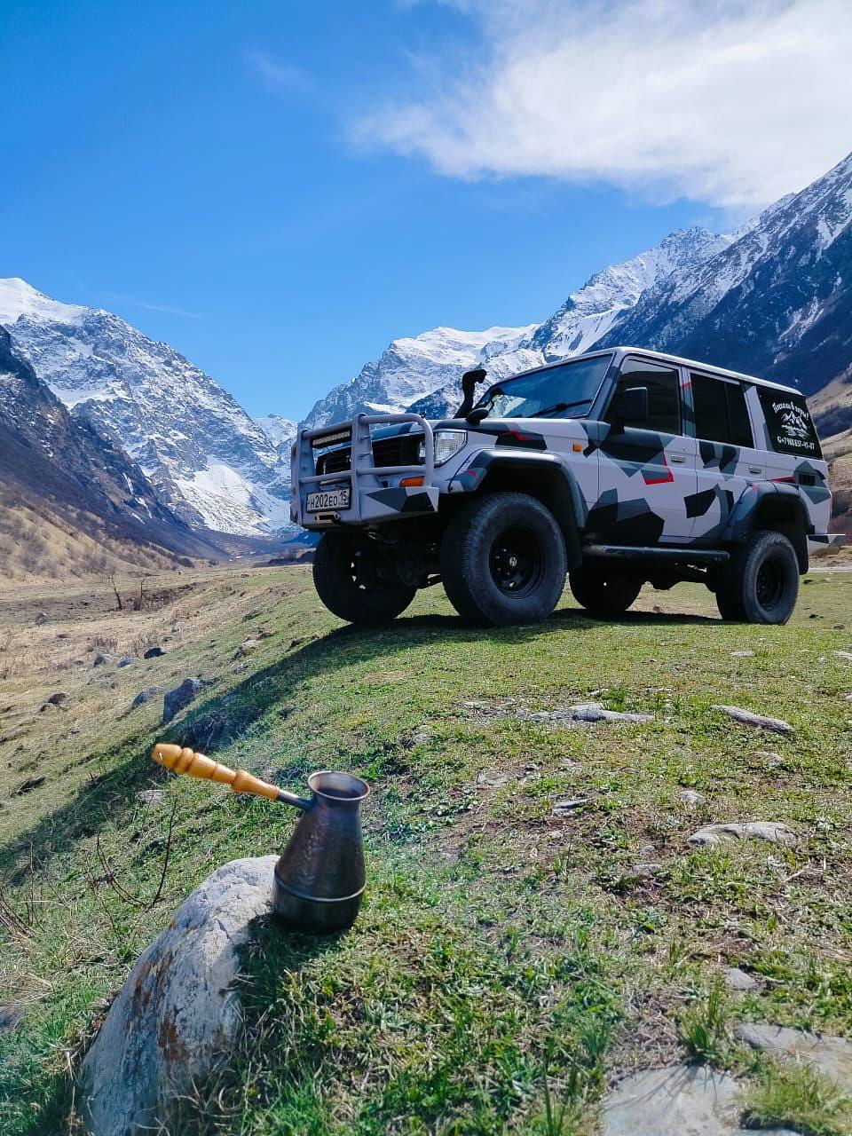 Утром, после завтрака (09:00), мы загружаемся в горные внедорожники и отправляемся в путь! За рулем каждого джипа Профессиональный водитель - экспедитор/экскурсовод, в транспортном средстве от 2-х - до 4-х человек. Мы отправимся в Алагирское ущелье (Военно-Осетинская дорога), к посещению: 40 тонный монумент Ныхас Уастырджи, самая большая наскальная конная статуя, заедем в загадочную часовню в селении Нузал, далее переместимся в Мамисонское ущелье и по старой дороге поднимемся к руинам с. Клят, где к нашему обзору откроется прекрасный вид всего ущелья. Мы посетим древний башенный комплекс с. Лисри, башню фамилии Боциевых, продегустируем все источники, которыми славится Мамисонское ущелье, доедем до с. Згид и увидем место где в скором будущем будет красоваться новый горнолыжный курорт "Мамисон". На обратном пути заедем в местный ресторанчик и отведаем национальное блюдо Северной Осетии, Лывжа (ориентировочное время прибытия 13:00).