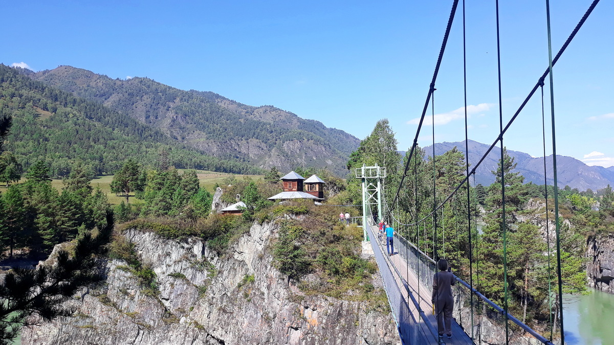 Подвесной мост через величественную Катунь — это первое испытание для ваших нервов и источник незабываемых эмоций! Представьте: вы шагаете по воздуху, а внизу бушует горная река, создавая симфонию из брызг и пены!