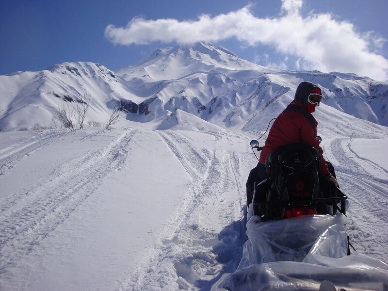 Поездка к подножию Авачинского вулкана на ратраке или на снегоходе (в нарте)