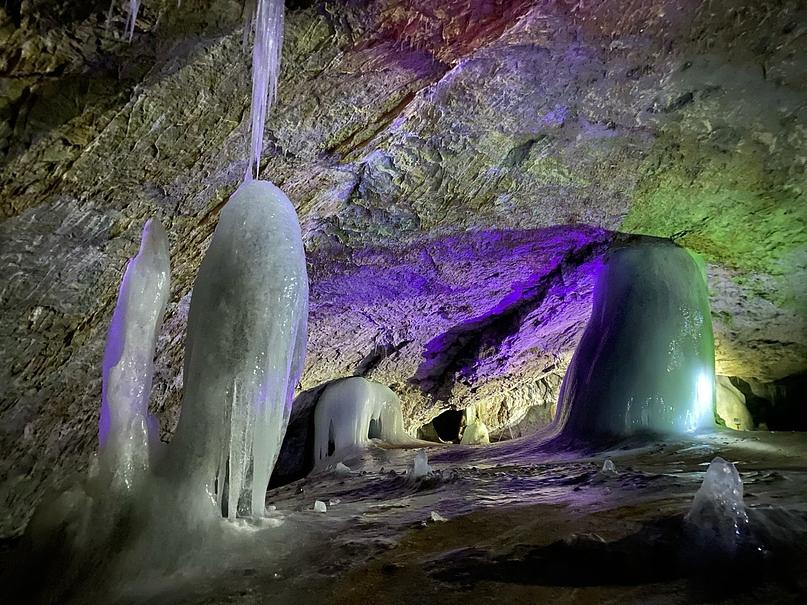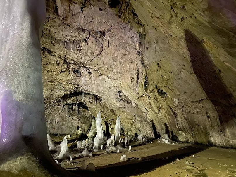 Представляет собой карстовую полость мешкообразного типа, образовавшуюся в известняках. Состоит из грандиозного зала длиной 104 метра, шириной 61 метр и высотой до 26 метров. Пол пещеры покрыт ледником. За счет особенностей пещеры он не тает даже жарким летом, поскольку температура здесь всегда минусовая (-4ºC). В пещере уникальный реликтовый ледник.