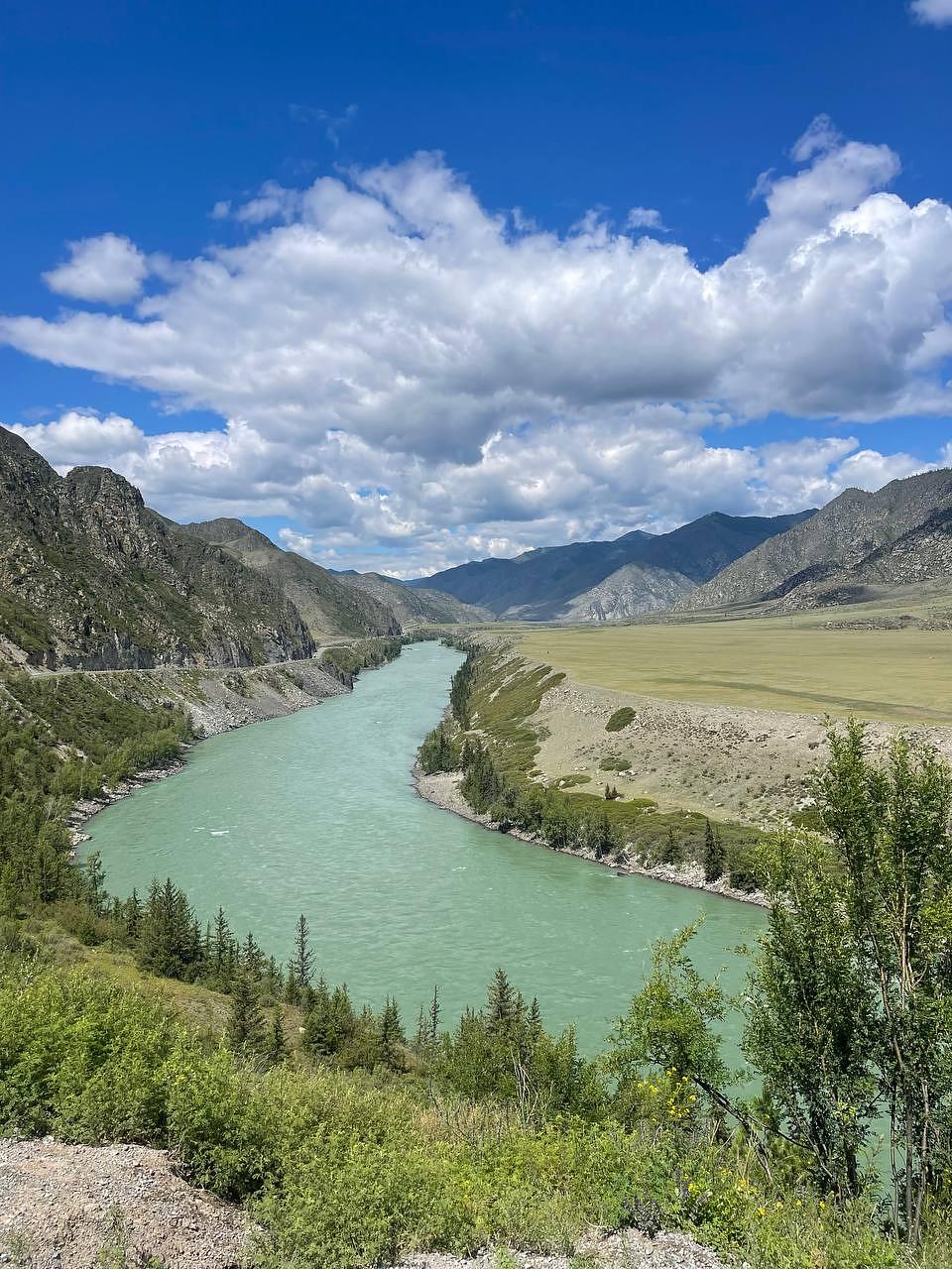Вас ждет кульминация экскурсионной программы — вид со смотровой площадки «Толгоек». Это лучшая точка, чтобы охватить взглядом всё великолепие Чемала: мощное слияние рек и уютное селение, окруженное величественными горами.