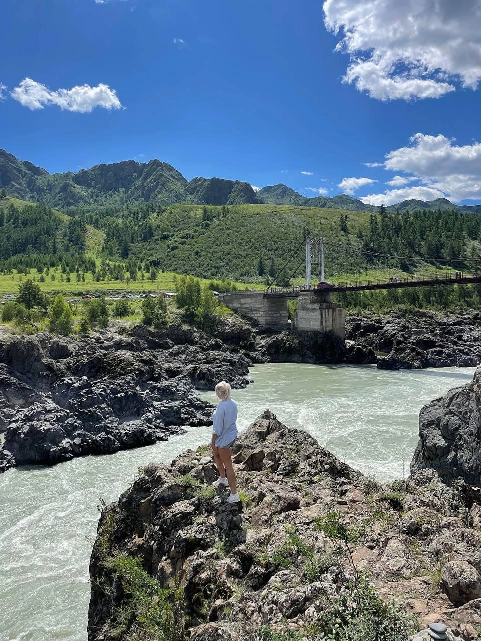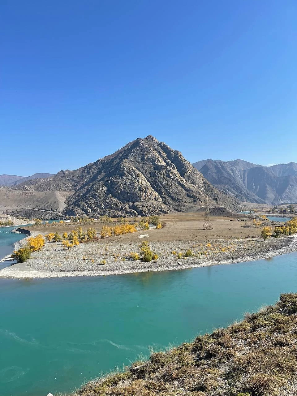 - Смотровая площадка с потрясающим видом на горные хребты и бирюзовую Катунь
