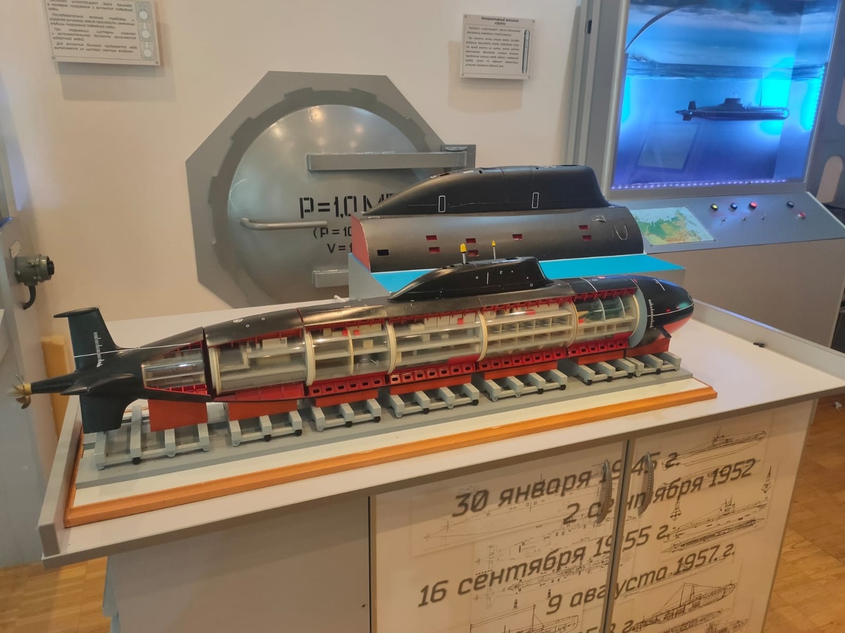 А дальше нас ждёт самое интересное в городском краеведческом музее – интерактивная программа «Музейная субмарина» с 8-метровым экспонатом «Сборная модель атомной подводной лодки».
