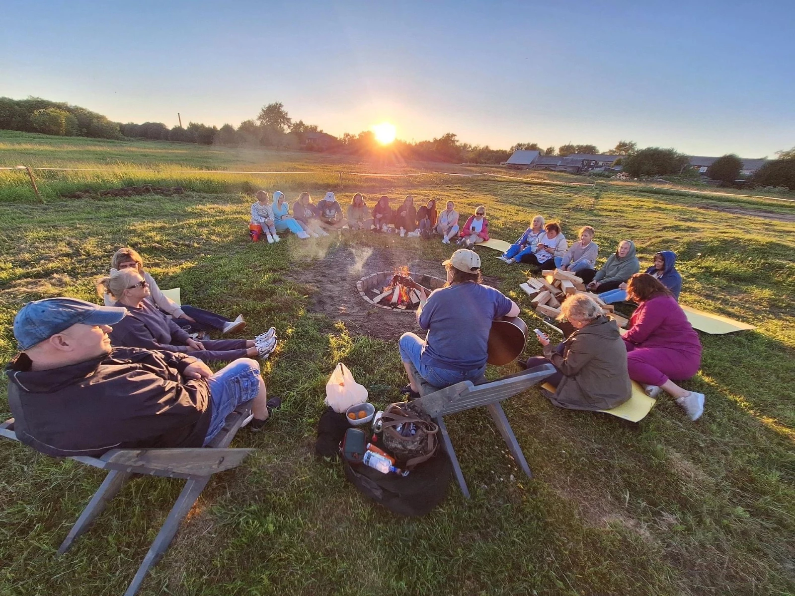 • Вечерний огонек у большого пионерского костра с песнями под гитару.