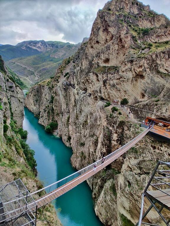 ➤ Пещера «Нохъо», мы с вами прогуляемся по искусственным пещерам до уникального места, где прогуляемся над каньоном по подвесному мосту, расположенным на высоте 60 метров от реки Сулак.