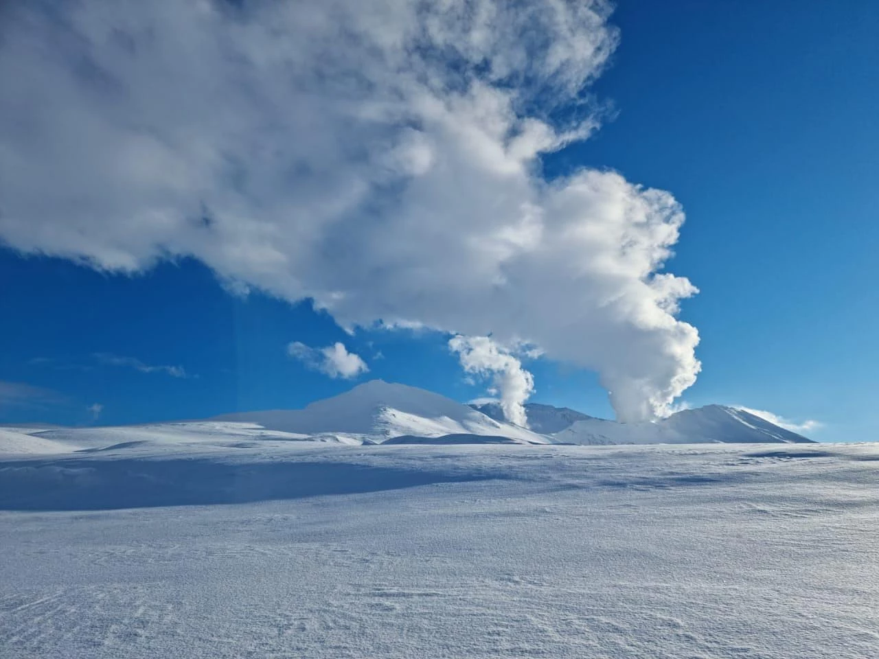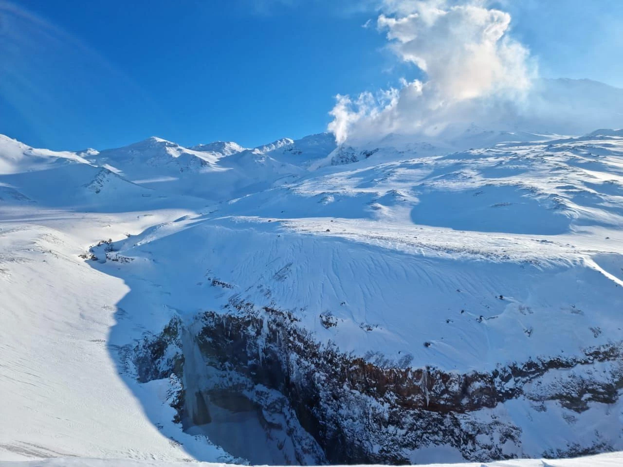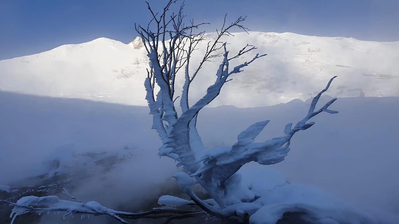 Фумарольное поле «Мини Долины гейзеров» является местом самого мощного выноса тепла из недр обширного Мутновского гидротермального бассейна. Кипящие и пульсирующие источники, грязевые котлы и фумаролы (выходы горячего вулканического газа и пара в виде струй) группами разбросаны по склонам и оврагам на протяжении более километра. Вас ждет кусочек лета среди белоснежного зимнего царства: фантастическое ощущение от клубящегося пара, бьющих из-под земли фонтанов и ярких красок окружающего ландшафта. Это «Камчатский полюс снежности» и самый многоснежный район России: мощность снежного покрова здесь более 2500 мм, в долинах – более 3000 мм.