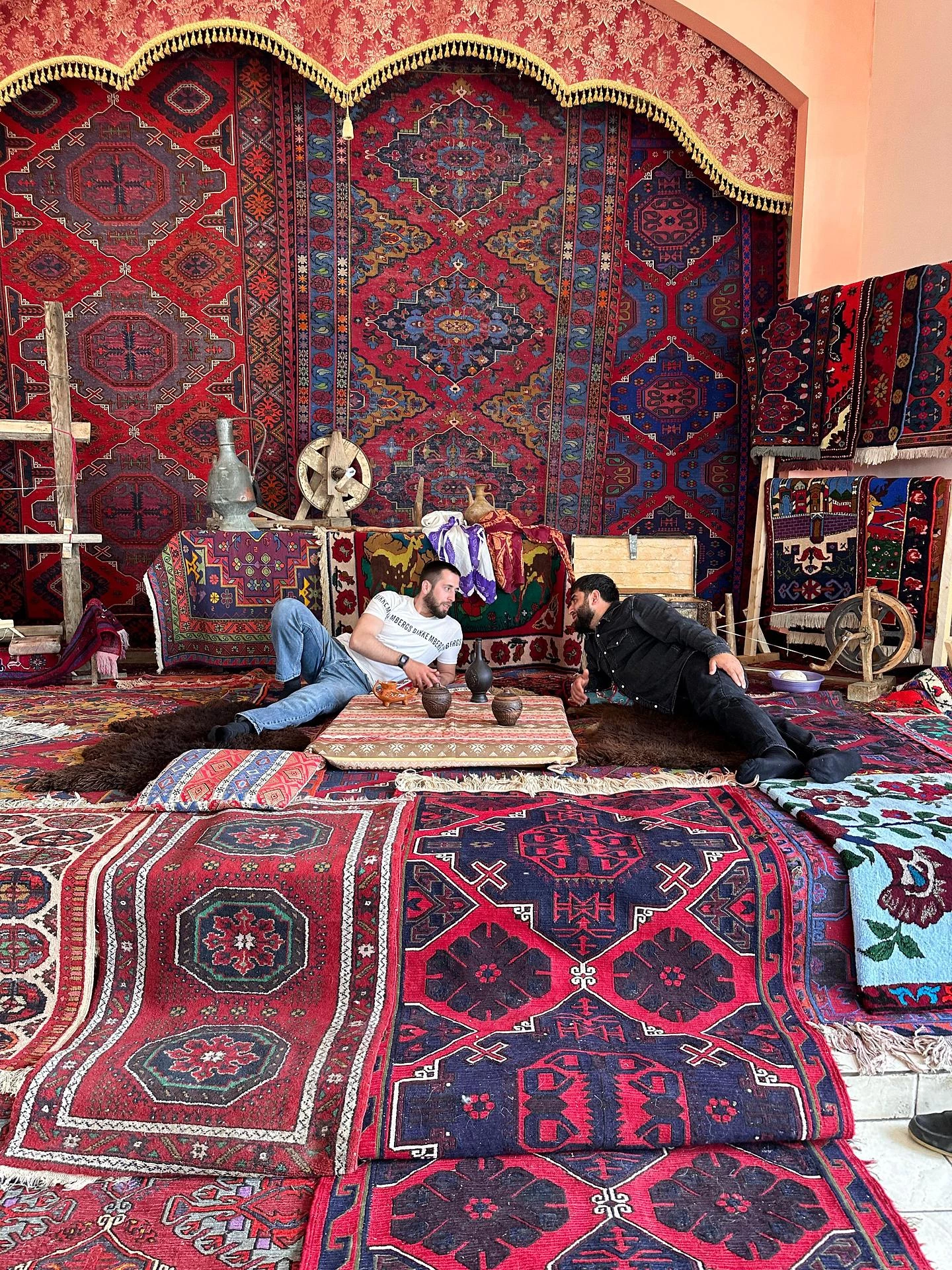 Иммерсионный обед: Готовьтесь к необычному опыту! Нас ждет прощальный обед в этно-доме на полу, на удобных подушках. Здесь вы попробуете блюда южного Дагестана и сможете примерить национальные костюмы!