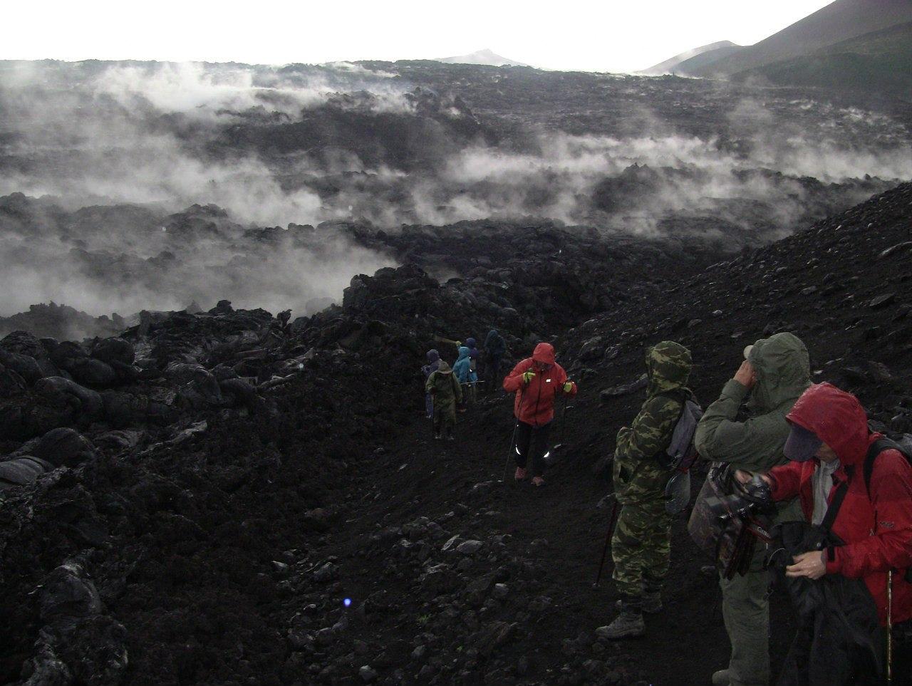 3 день. Завтрак. Выезд к подножию вулкана Плоский Толбачик. Восхождение к кратеру вулкана (1300 > 3085 м). В результате Большого трещинного Толбачинского извержения произошло обрушение дна колодца кратера на вершине и образовалась кальдера глубиной около 500 м и шириной около 1,7 км. Осмотр кратера и окружающих ландшафтов. Восхождение занимает 8-10 часов. Возвращение в лагерь. Ужин. Ночевка в глэмпинге.