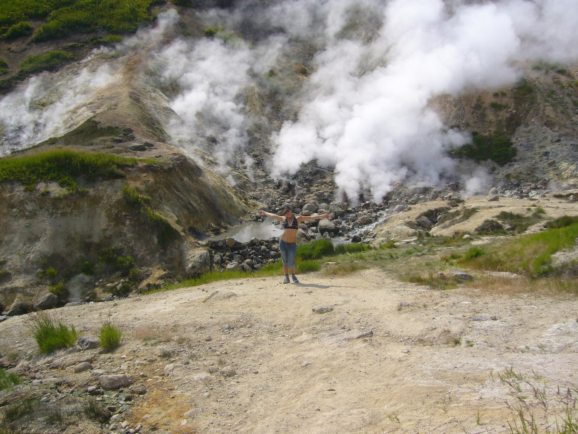 «Мини Долина гейзеров» - так жители Камчатки называют Дачные термальные источники. Находятся в 120 км от краевого центра к северу от Мутновского вулкана у подножья сопки Скалистой в непосредственной близости от Мутновской геотермальной электростанции. Станция расположена на отметке 780 м и сама по себе является уникальной достопримечательностью. Фумарольное поле «Мини Долины гейзеров» является местом самого мощного выноса тепла из недр обширного Мутновского гидротермального бассейна. Кипящие и пульсирующие источники, грязи и фумаролы (выходы горячего вулканического газа и пара в виде струй) группами разбросаны по склонам и оврагам на протяжении более километра. Фантастическое ощущение от клубящегося пара, бьющих из-под земли фонтанов и ярких красок окружающего ландшафта никого не оставят равнодушными.