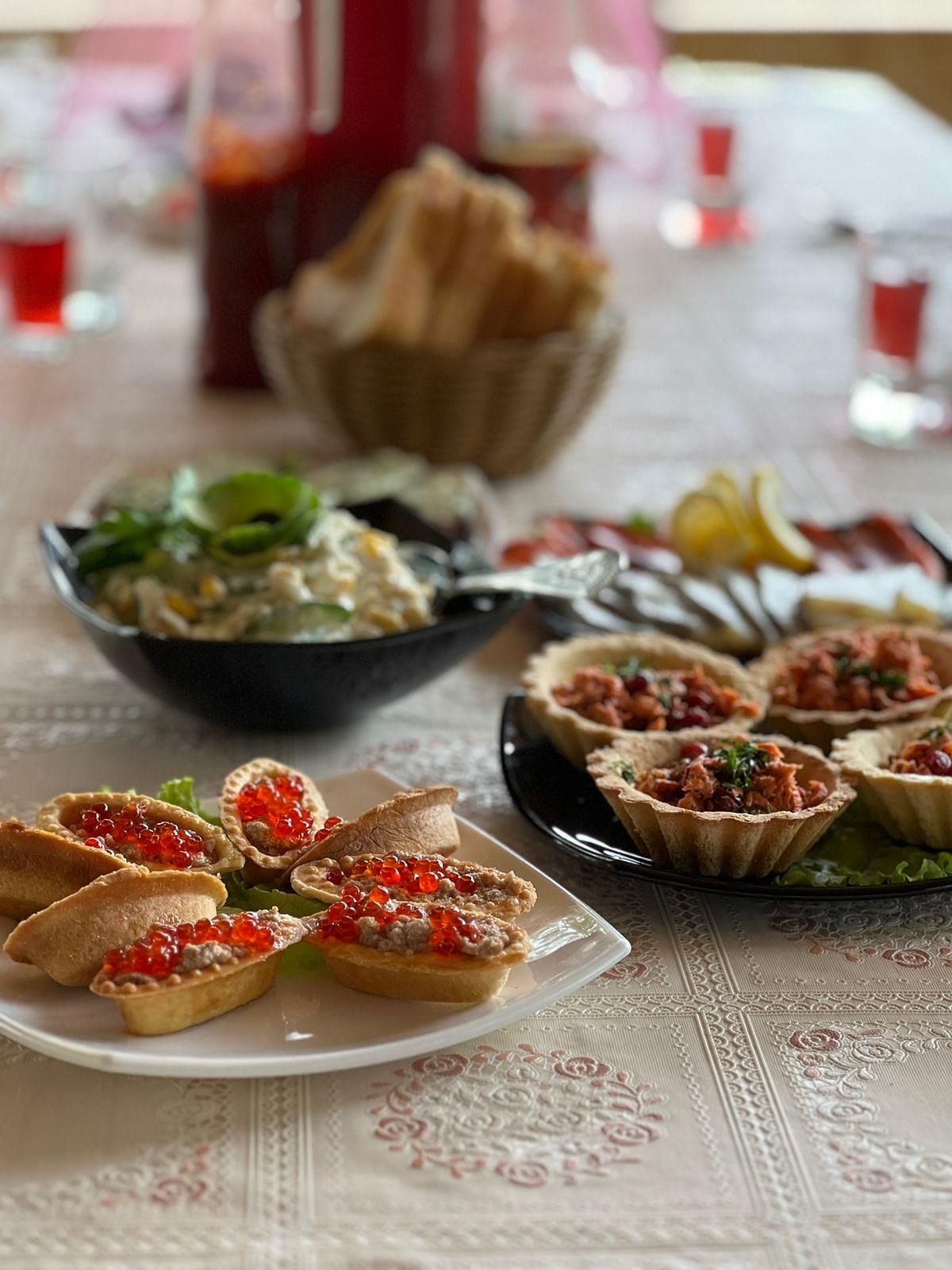 На рыболовной базе нас ждет вкусный обед из камчатских локальных продуктов: приветственная наливка из камчатских ягод, уха из свежей рыбы, салаты и закуски из местных дикоросов. Все это в теплой уютной летней кухне.