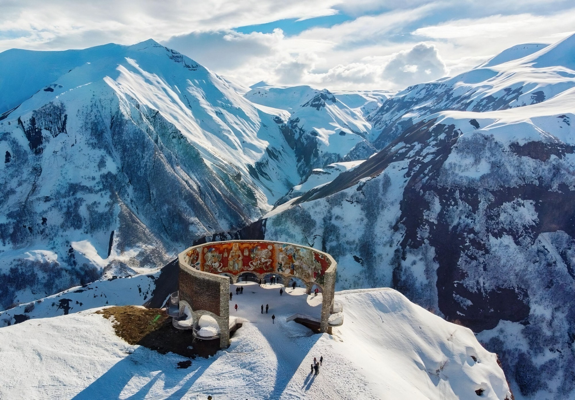 Монумент Дружбы Народов 🌄 – грандиозная арка в горах, откуда открывается один из самых впечатляющих панорамных видов на Кавказские горы. Этот монумент символизирует единство и мир 🤝, а фотографии, сделанные здесь, передают атмосферу свободы и величия 📷.