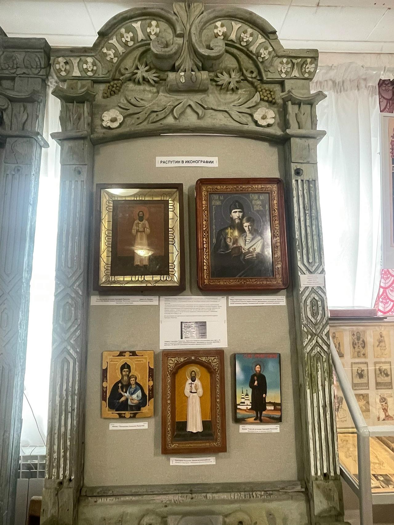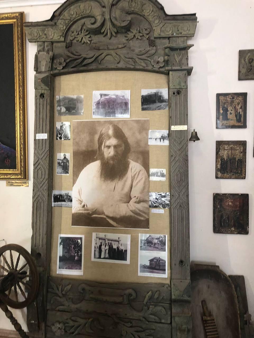 В музее представлены экспонаты, которыми лично пользовался Распутин: старый кованый сундук, трюмо, икона Симеона Верхотурского, блюдо и ложка с личной монограммой А.Ф. Романовой и многое другое.