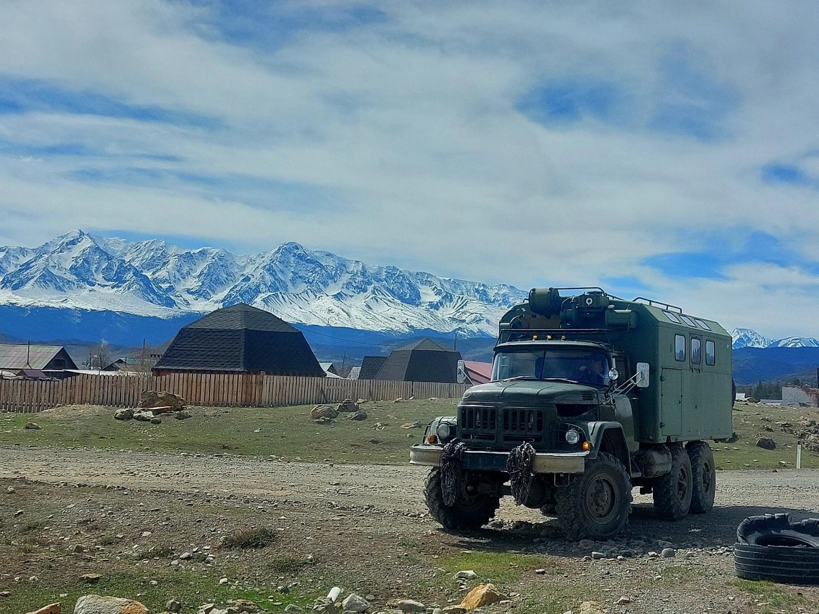Путешествие участников начинается с захватывающей поездки на высокопроходимом транспорте — УАЗ, ГАЗ-66 или ЗИЛ в долине Актру.