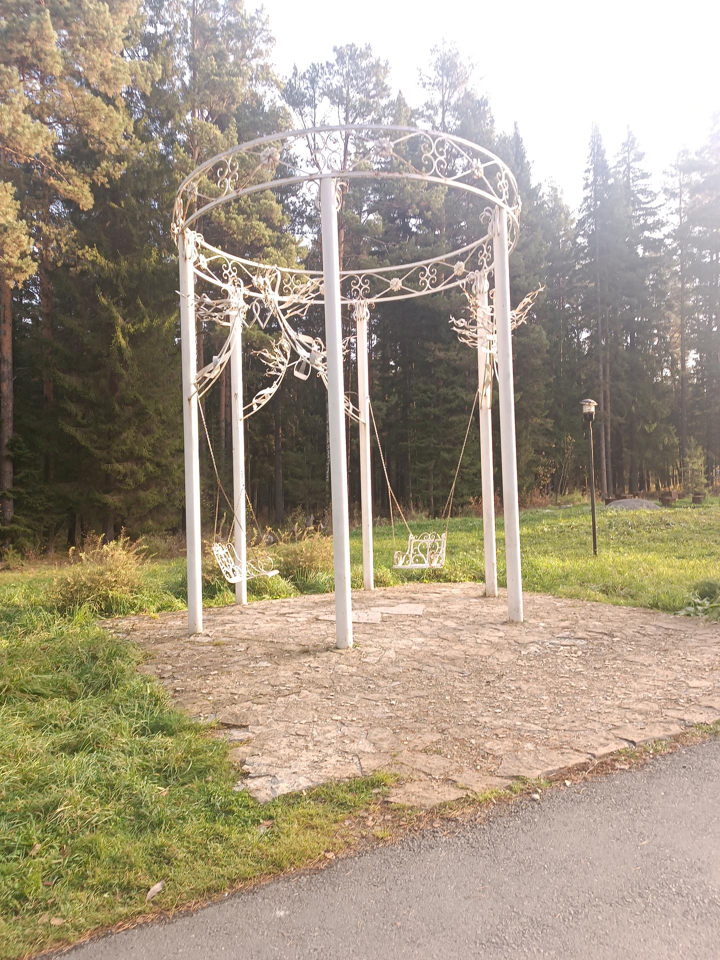 Территория базы очень обширна: на ней есть просторное кафе, несколько спортивных площадок, жанровые скульптуры, смотровая площадка на реку Чусовая и скалы «Собачьи ребра», а также небольшой зоопарк домашних животных.