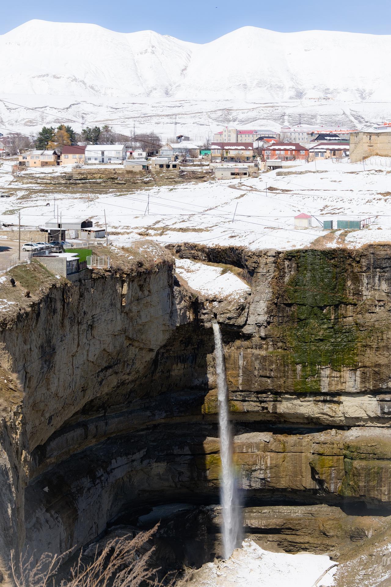 Настоящее чудо Хунзахского плато — водопад высотой более 70 метров. Зимой он, особенно красив: вода превращается в сверкающие ледяные струи, а скалы вокруг окутаны лёгкой изморозью. Отсюда открывается завораживающий вид на Цолотлинский каньон и горные реки.