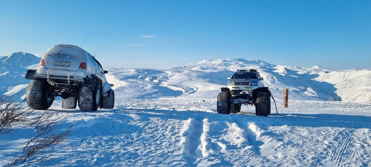 08:00-09:30 ̶ Поездка на вездеходах в район Мутновского вулкана. Остановка на смотровой площадке Вилючинского перевала