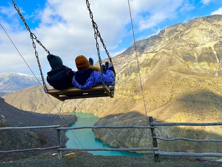 ➤ После всех приключений мы поужинаем по дороге в ресторане «Лагуна Голхин», который находится над красивым Гунибским водохранилищем, и отправимся в А-фреймы.