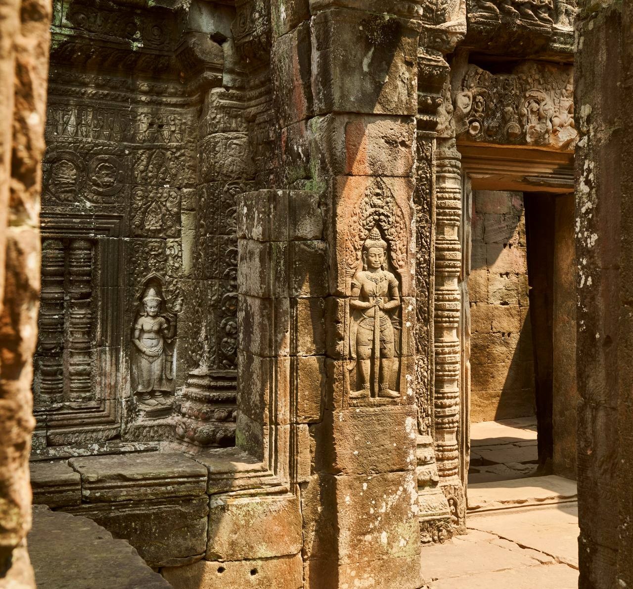 Та Пром - кинематографичная жемчужина джунглей, где корни деревьев переплетаются с каменными стенами, создавая впечатление, что природа забрала храм себе. Место знакомо по фильму Лара Крофт, и прогулка здесь вызывает ощущение приключения и исследования, словно вы главный герой собственной экспедиции.