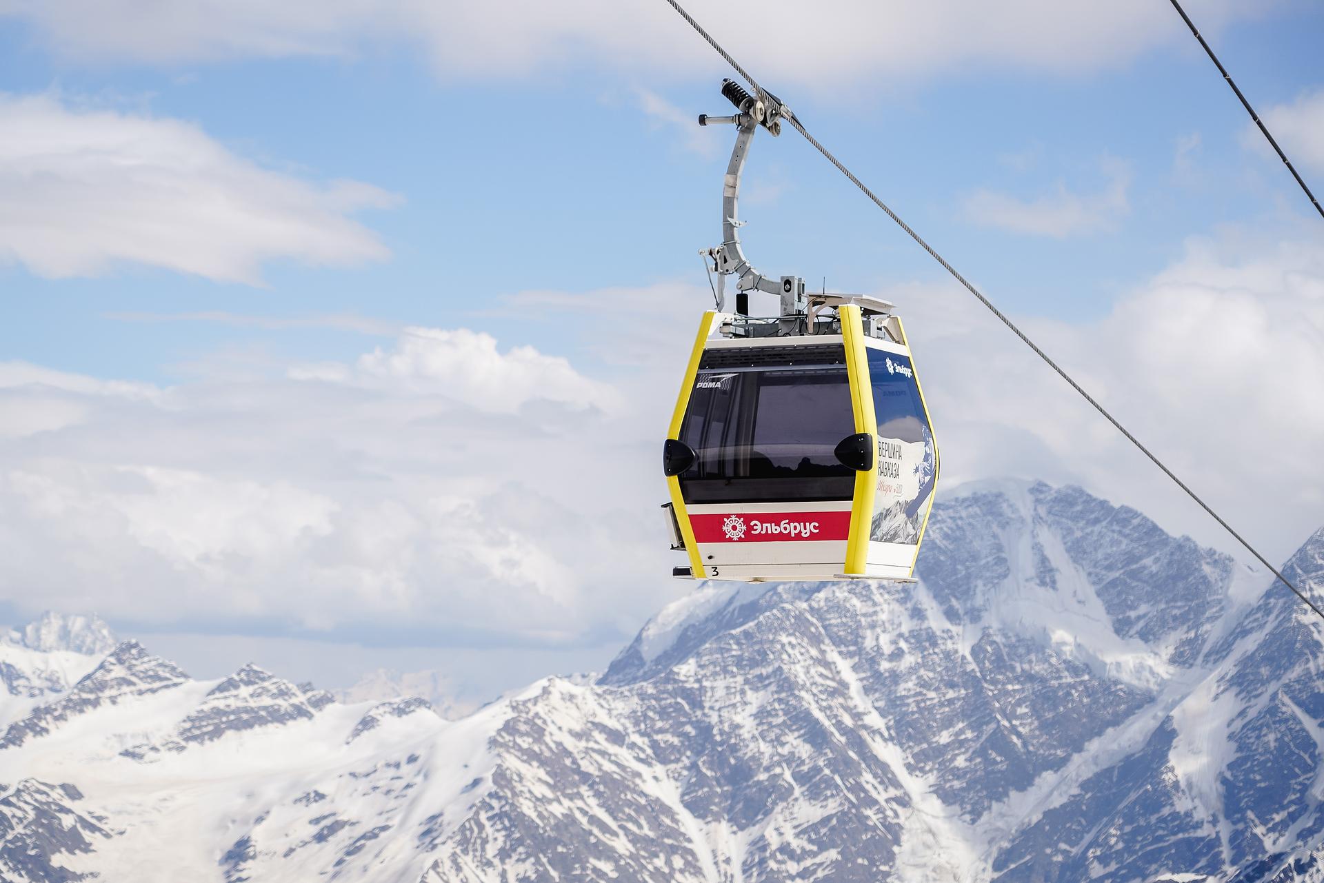 Канатные дороги плавно поднимают нас от поселка Азау (2350 м.) к станциям «Кругозор» (3000 м.), «Мир» (3500 м.) и «Гарабаши» (3847 м.).