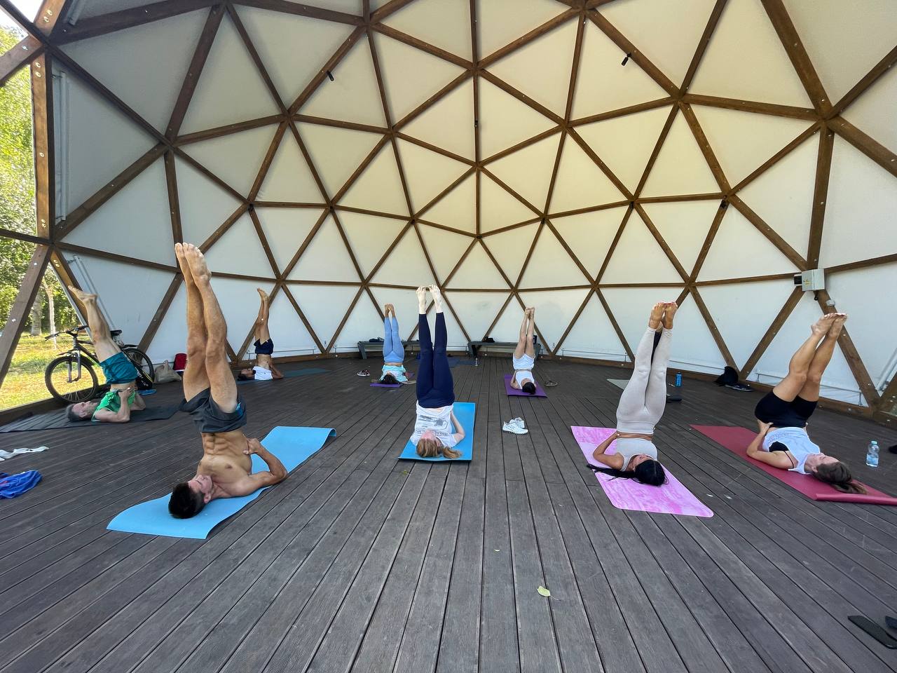 Аэройога Завтрак Свободное время Обед Пранаямы и медитация с поющими чашами + гонгом в гамаках Ужин Баня на дровах у реки