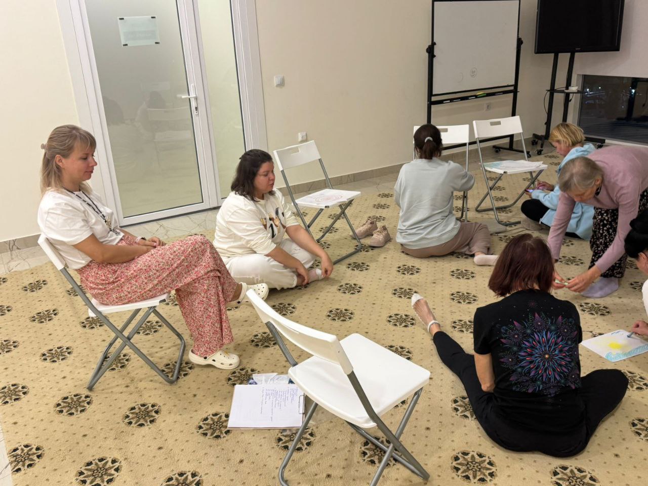 9.00 Телесная практика 10.00 Завтрак 11.00 Терапевтическое занятие 13.00 Обед 14.00 Отдых, прогулка, сон 18.00 Ужин 19.00 Медитация расслабление или бассейн / СПА
