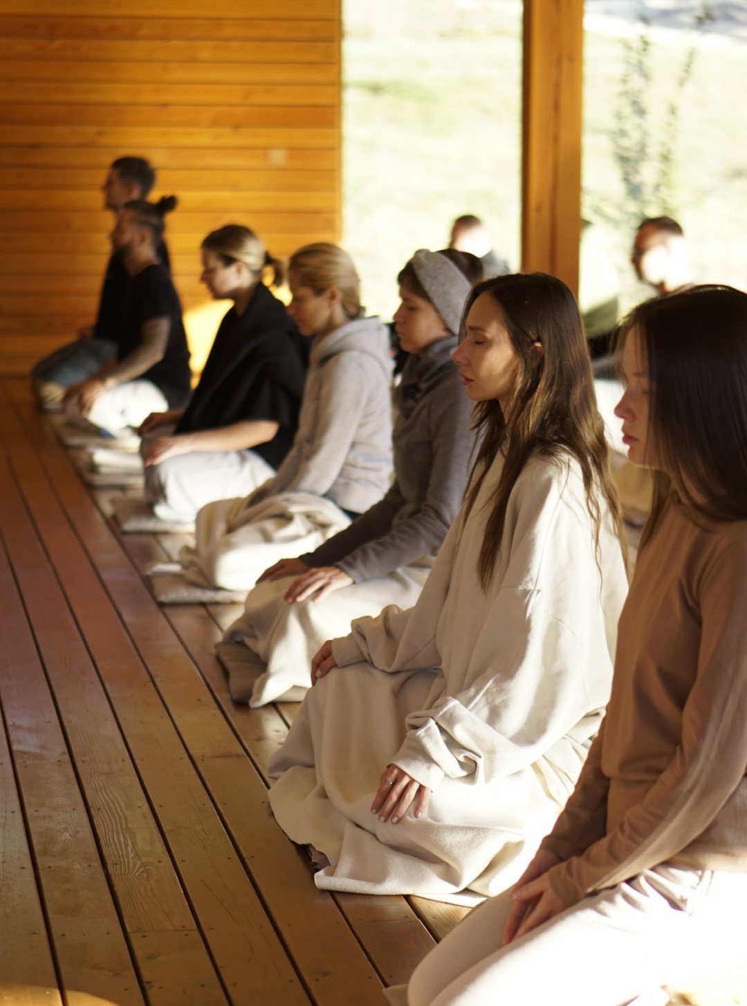 Благостный режим дня: Ранний подъем (4:30) Ранний отбой (21:30) Инструкции по технике медитации (подходит для новичков) Медитации сидя Медитации при ходьбе Лекции о дхамме Лекции по карме Интервью с учителем Занятия йогой по утрам Вегетарианское сбалансированное питание 1-ый день: Заселение и регистрация участников Орг. собрание: инструкции по ретриту, вопросы-ответы Начало молчания Вводная лекция Инструкции по технике Медитация сидя Последующие дни (в зависимости от продолжительности ретрита): полные дни ретрита, согласно расписанию Завершающий день: Сидячая медитация Окончание режима тишины Шеринг (обратная связь участников) Общее фото Выезд участников