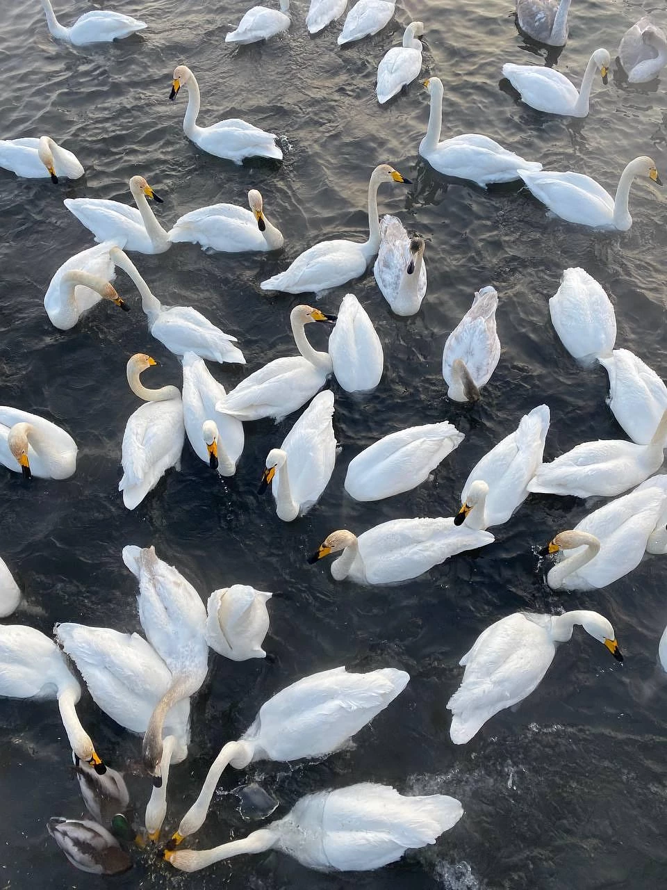 Лебединное озеро в Алтайском крае называют зимней сказкой.Озеро Лебединое (Светлое) — красивая достопримечательность региона. Расположено 80 км от курорта Белокуриха, на территории озера находится государственный природный заказник «Лебединый». Он создан с целью сохранения единственной на Алтае зимовки лебедей - кликунов. Причина кроется в "секрете" озера, которое из-за многочисленных родников не замерзает, температура воды зимой не опускается ниже +5 градусов и лебеди остаются на зимовку. А Вы знали, что в России всего два заказника, где зимуют лебеди? А мы с гордостью отмечаем, что один находится у нас, на Алтае, а второй в Анадырском районе Чукотского автономного округа. Первые лебеди появились в этих местах в 1967 году - тогда было до 20 птиц, сейчас же около 1000 лебедей. Кликуны зимуют на Алтае с ноября по март- апрель, в зависимости от погоды. Весной лебеди улетают в полярные районы, а когда северные озера замерзают – возвращаются к нам с молодым потомством. Для того, чтобы лучше рассмотреть этих птиц, - сделаны помосты и разрешают кормить специальным кормом (его продают перед входом).