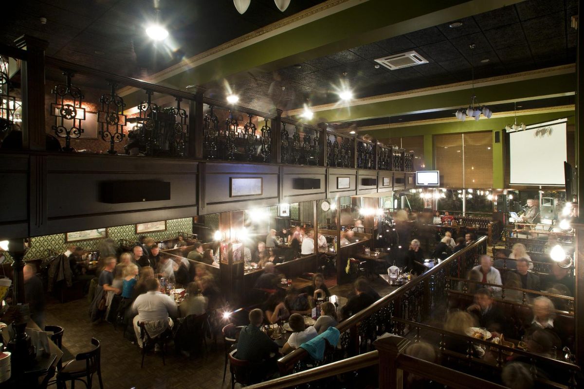В меню нижнего этажа можно найти намёки на английскую кухню, а для фанатов английской лиги есть футбольные игры. Стильный интерьер и музыка подчеркивают старые добрые традиции островного государства.